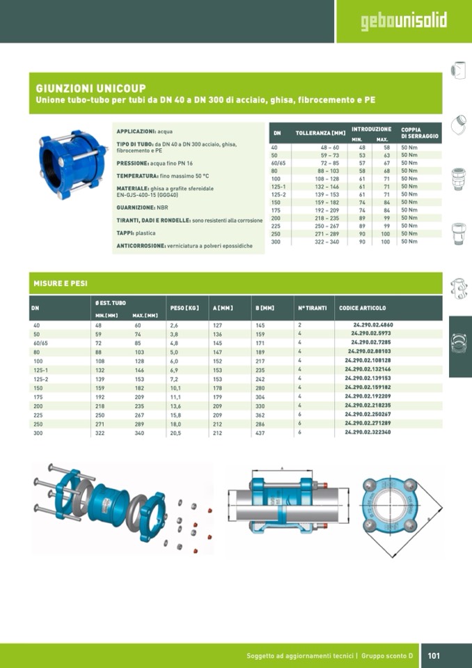 TIPO DI TUBO: da DN 40 a DN 300 acciaio, ghisa,