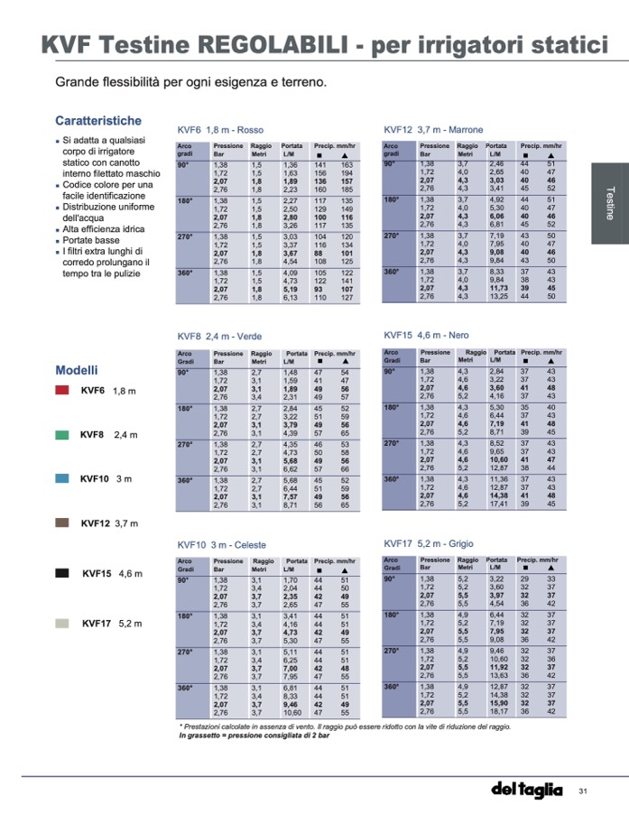 * Prestazioni calcolate in assenza di vento. Il raggio pu
