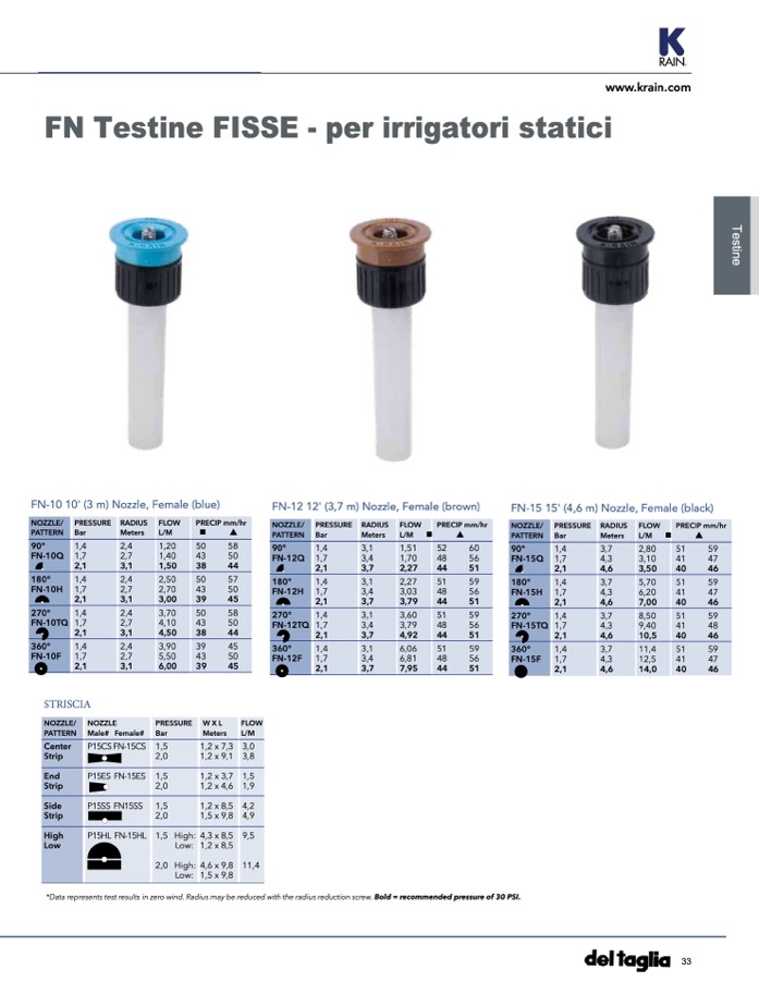 *Data represents test results in zero wind. Radius may be reduced with the radius reduction screw. Bold = recommended pressure of 30 PSI.