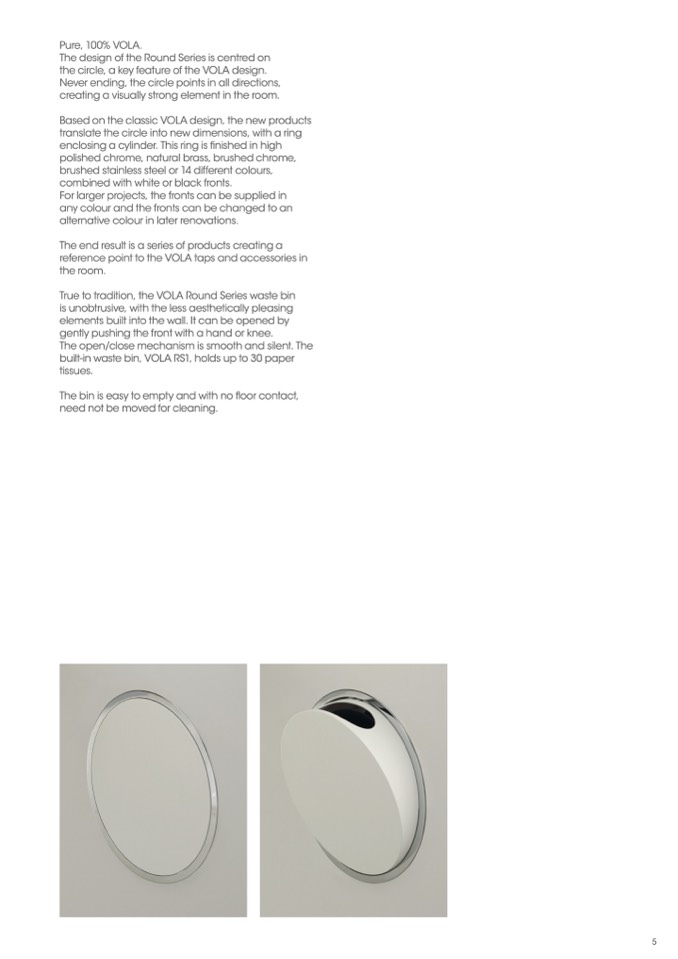 built-in waste bin, VOLA RS1, holds up to 30 paper