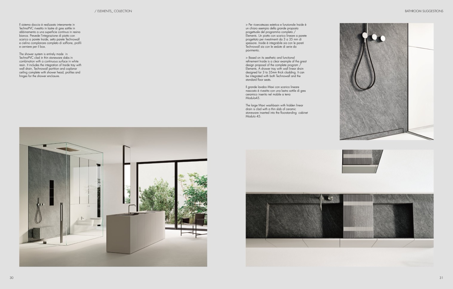 Elements. Un piatto con scarico lineare a parete