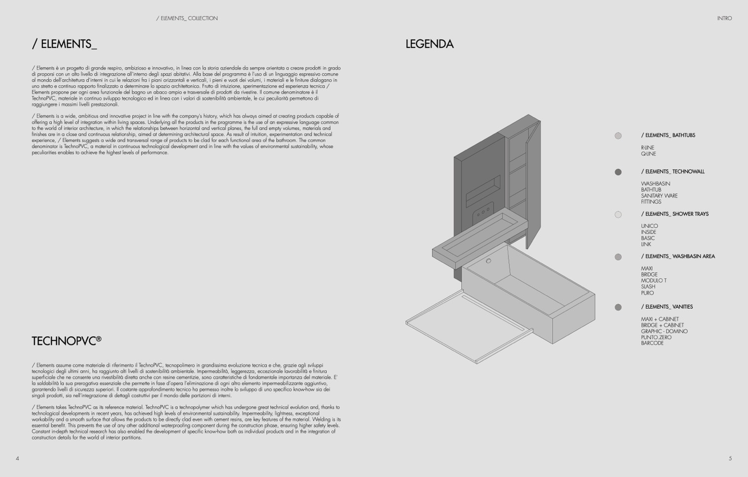 / Elements assume come materiale di riferimento il TechnoPVC, tecnopolimero in grandissima evoluzione tecnica e che, grazie agli sviluppi