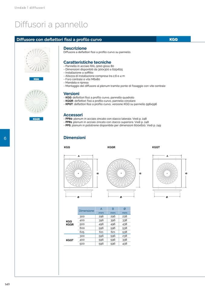 - KPQT: deflettori fissi a profilo curvo, versione KGQ su pannello 596x596