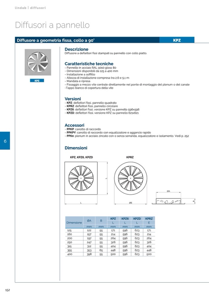 - KPZ6: deflettori fissi, versione KPZ su pannello 596x596