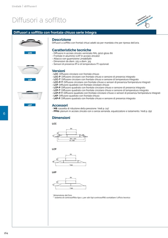 - LCC-T: Diffusore circolare con frontale chiuso e sensore di temperatura integrato