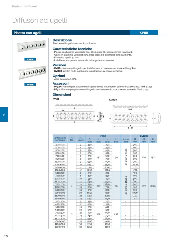 - KVBB: piastra multi-ugello per installazione a parete o su canale rettangolare.