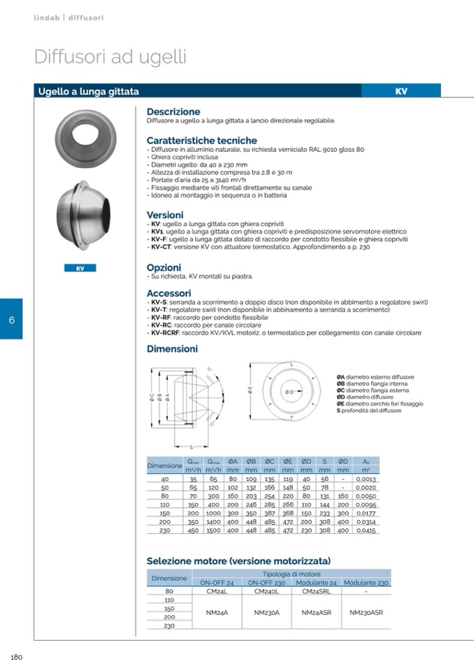 - KV-F: ugello a lunga gittata dotato di raccordo per condotto flessibile e ghiera copriviti