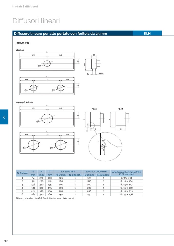 Attacco standard in ABS. Su richiesta, in acciaio zincato.