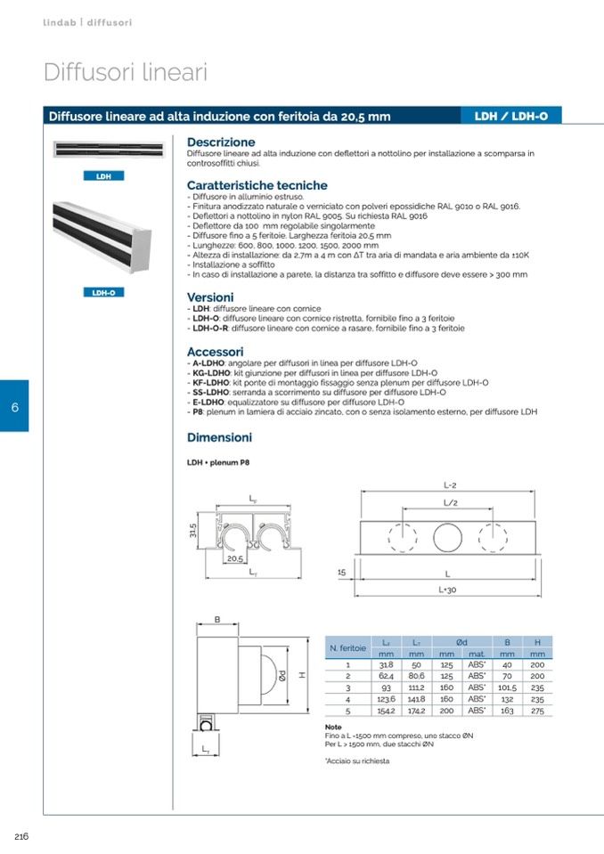 - LDH-O-R: diffusore lineare con cornice a rasare, fornibile fino a 3 feritoie