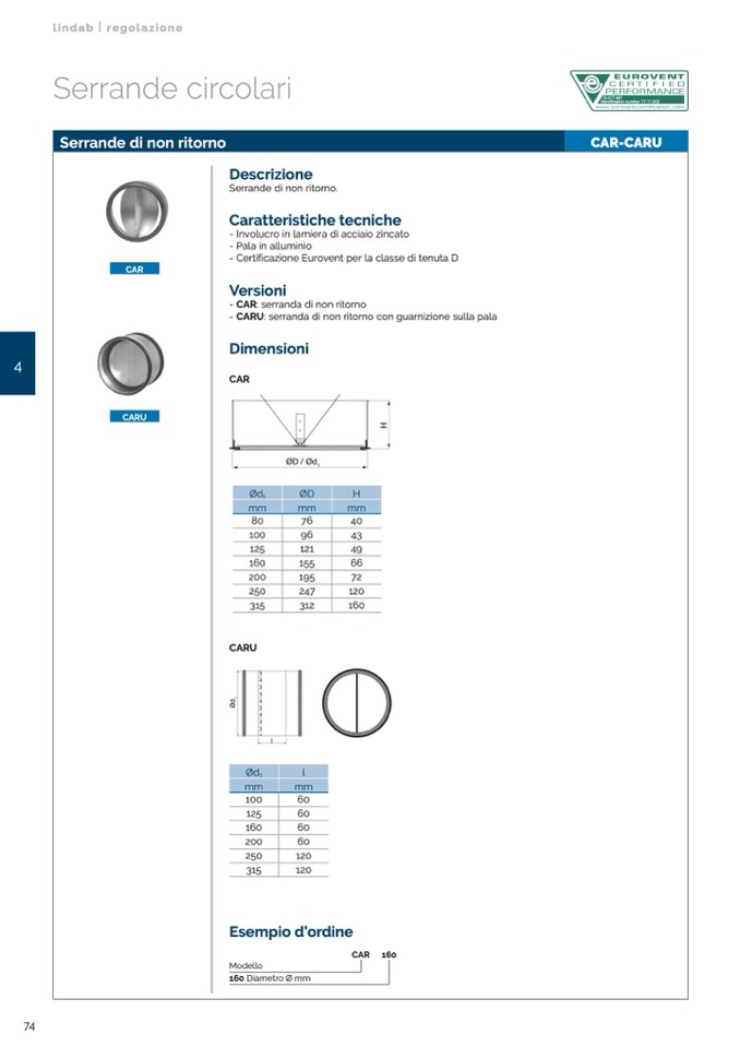 - CARU: serranda di non ritorno con guarnizione sulla pala