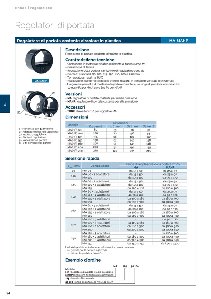 - Diametri standard: 80, 100, 125, 150, 160, 200 e 250 mm
