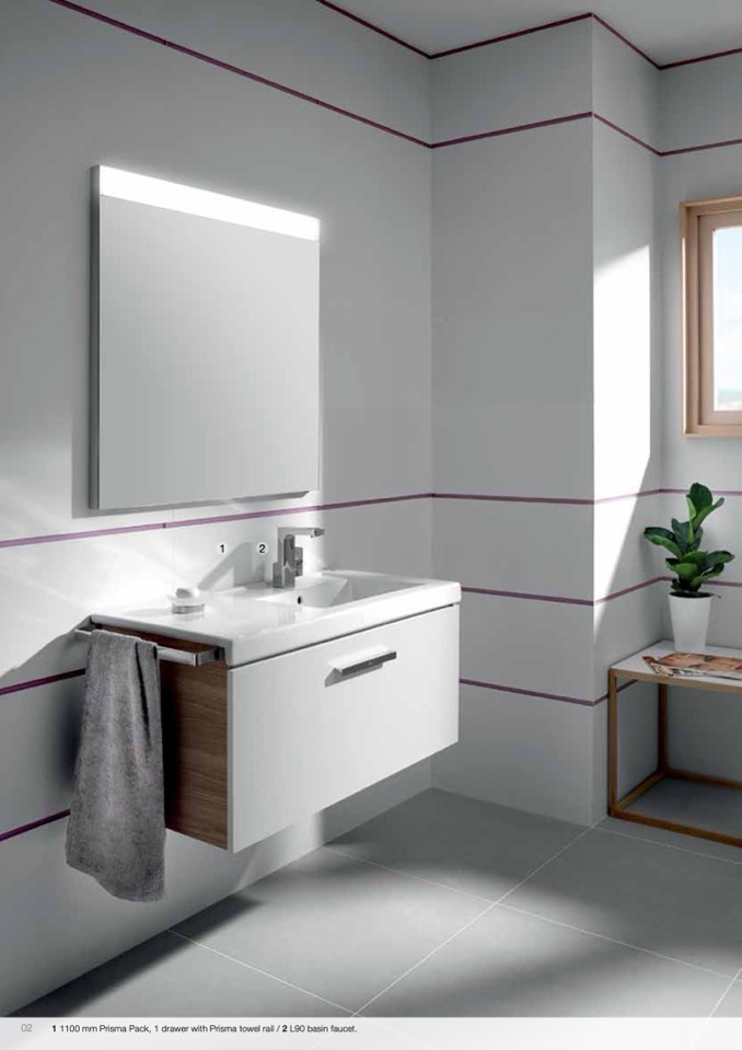 1 1100 mm Prisma Pack, 1 drawer with Prisma towel rail / 2 L90 basin faucet.