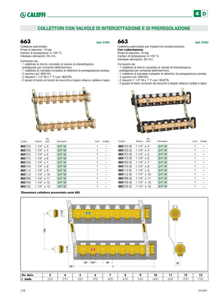 - 1 collettore di mandata completo di detentori di preregolazione portata;