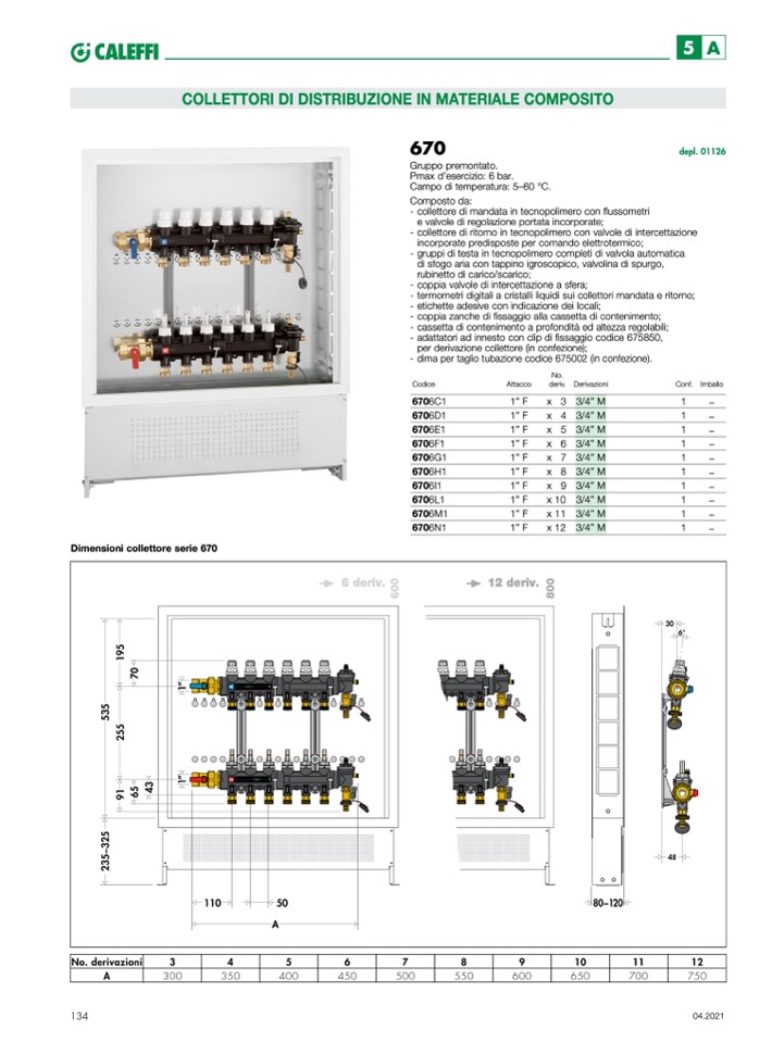 Dimensioni collettore serie 670