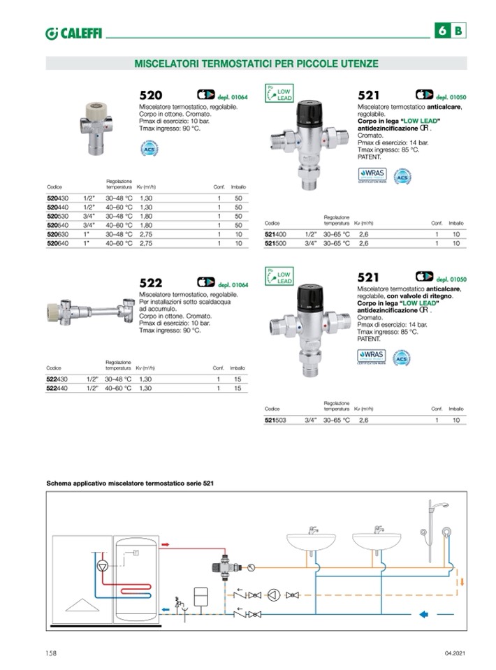 Schema applicativo miscelatore termostatico serie 521