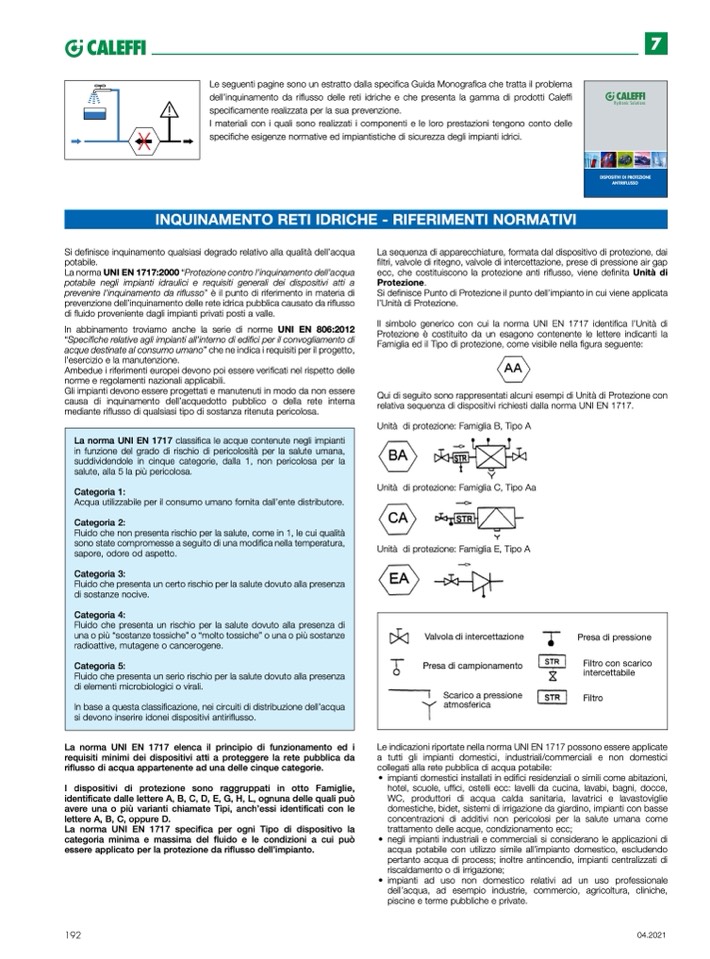 dell’inquinamento da riflusso delle reti idriche e che presenta la gamma di prodotti Caleffi