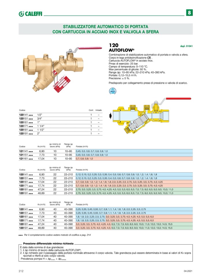 Combinazione di stabilizzatore automatico di portata e valvola a sfera.
