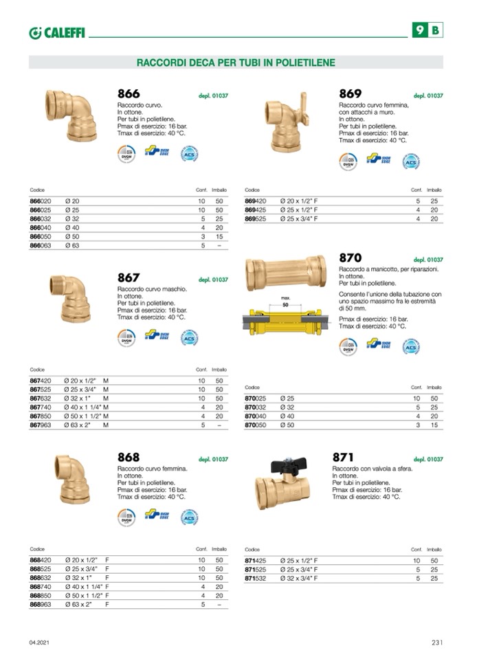Pmax di esercizio: 16 bar.