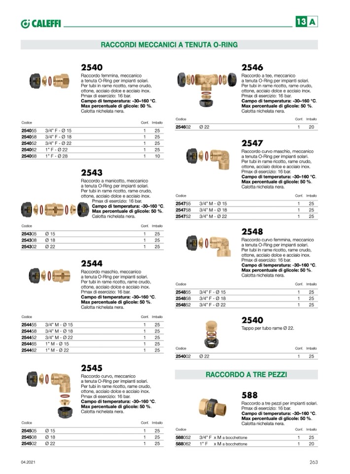 Raccordo a tre pezzi per impianti solari.