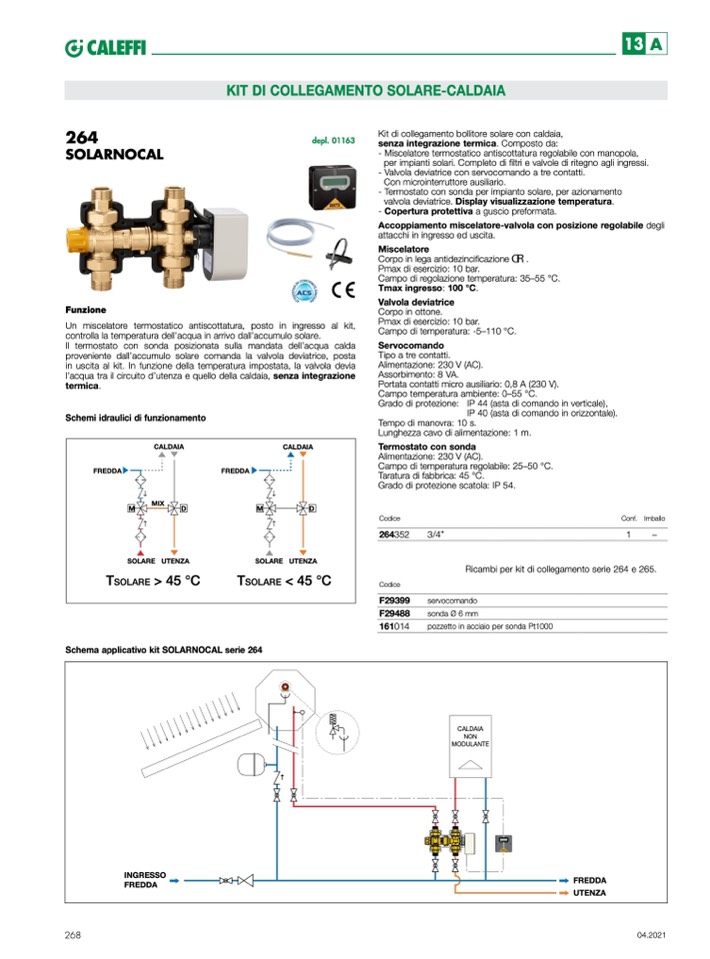 in uscita al kit. In funzione della temperatura impostata, la valvola devia