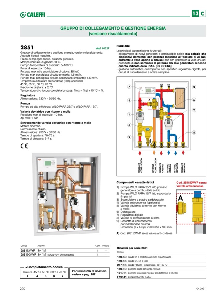 A) Cod. 285150WYP senza valvola anticondensa