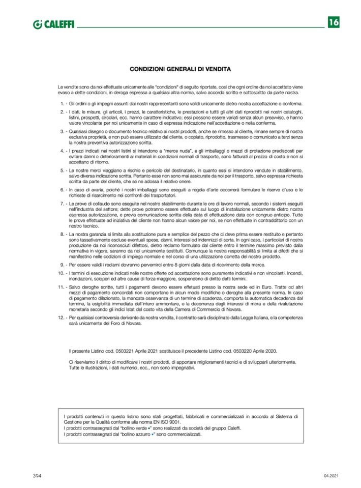 Il presente Listino cod. 0503221 Aprile 2021 sostituisce il precedente Listino cod. 0503220 Aprile 2020.