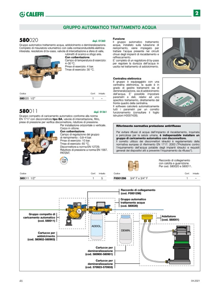 Gruppo automatico trattamento acqua, addolcimento e demineralizzazione.