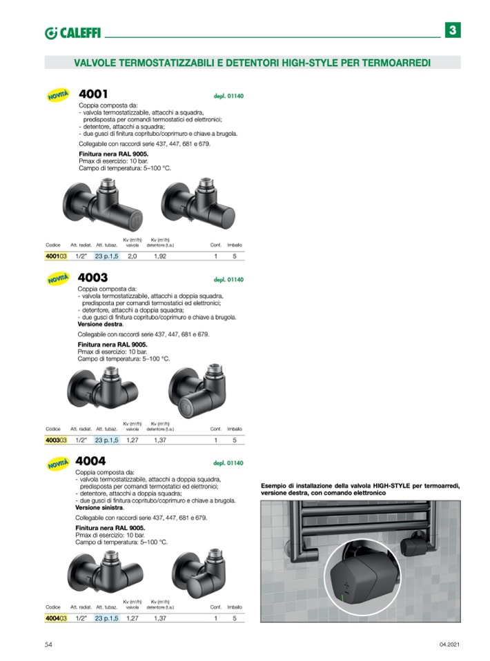 - valvola termostatizzabile, attacchi a doppia squadra,