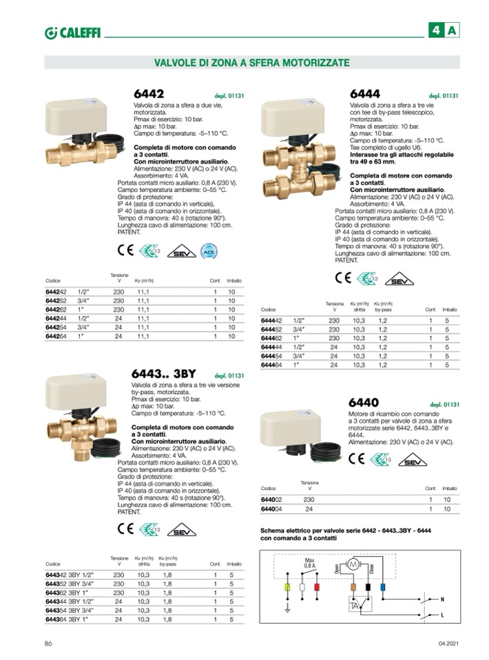 Schema elettrico per valvole serie 6442 - 6443..3BY - 6444