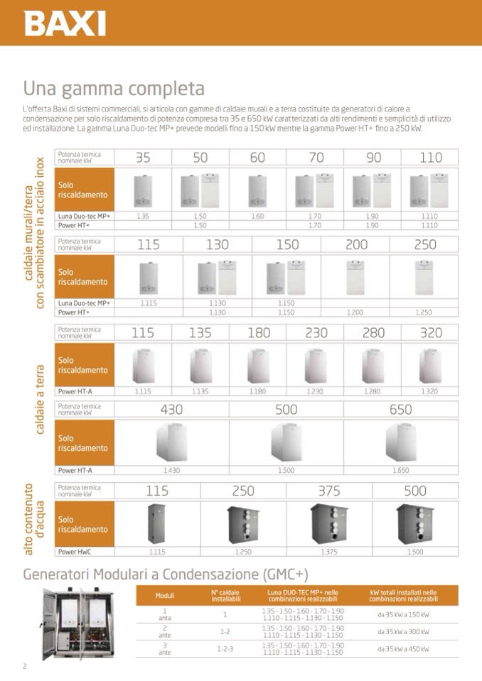 L’offerta Baxi di sistemi commerciali, si articola con gamme di caldaie murali e a terra costituite da generatori di calore a