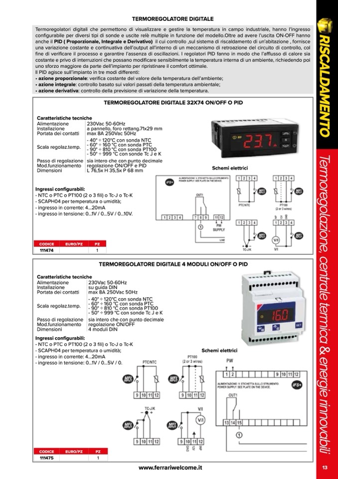 Termoregolatori digitali che permettono di visualizzare e gestire la temperatura in campo industriale, hanno l’ingresso