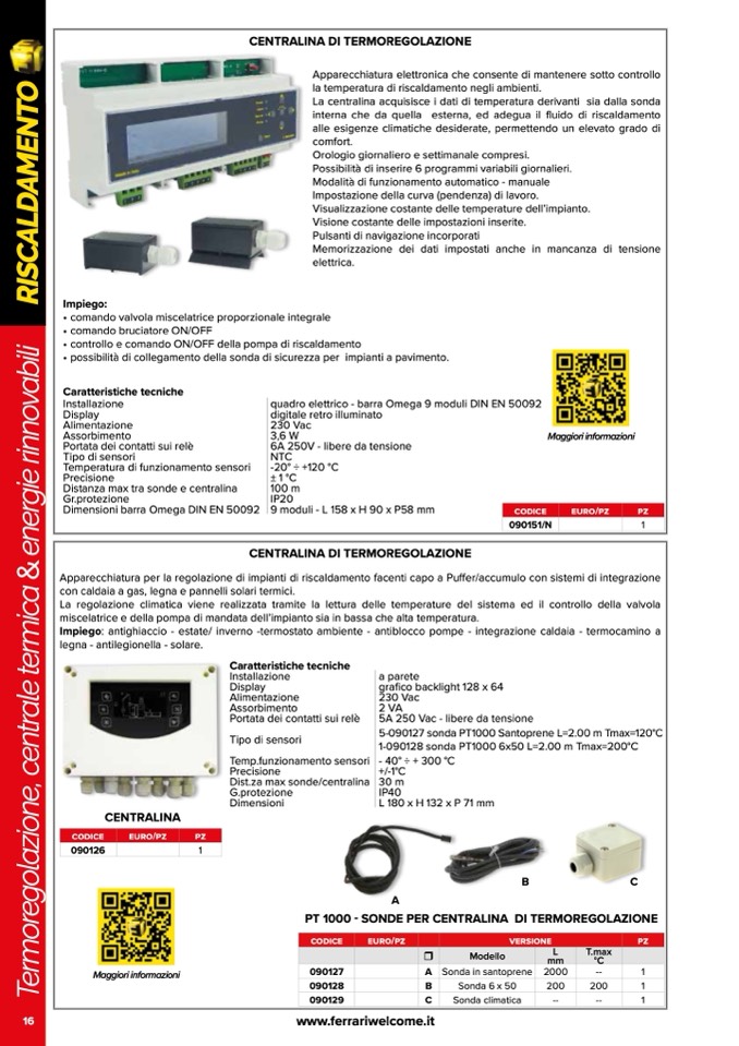 Impiego: antighiaccio - estate/ inverno -termostato ambiente - antiblocco pompe - integrazione caldaia - termocamino a