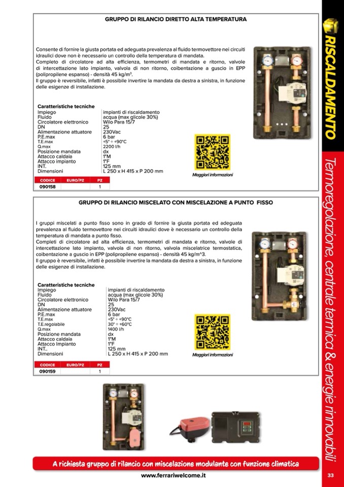 Completo di circolatore ad alta efficienza, termometri di mandata e ritorno, valvole