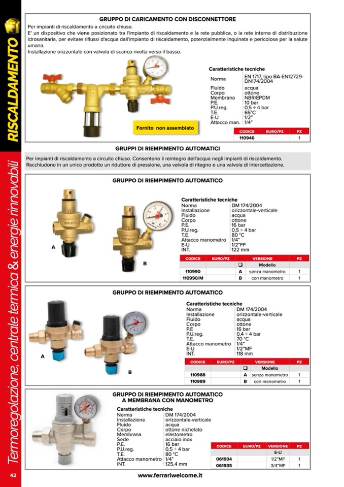 Per impianti di riscaldamento a circuito chiuso. Consentono il reintegro dell'acqua negli impianti di riscaldamento.