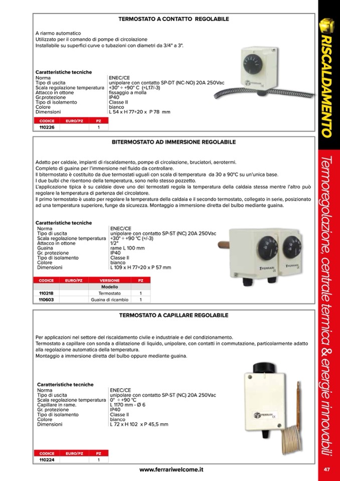 TERMOSTATO A CAPILLARE REGOLABILE