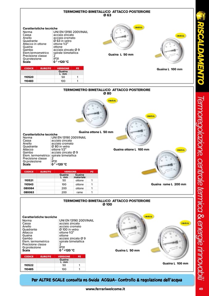 TERMOMETRO BIMETALLICO ATTACCO POSTERIORE