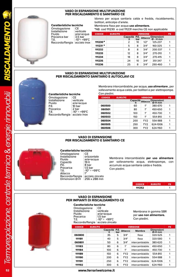 sollevamento acqua calda, per bollitori e per elettropompe.
