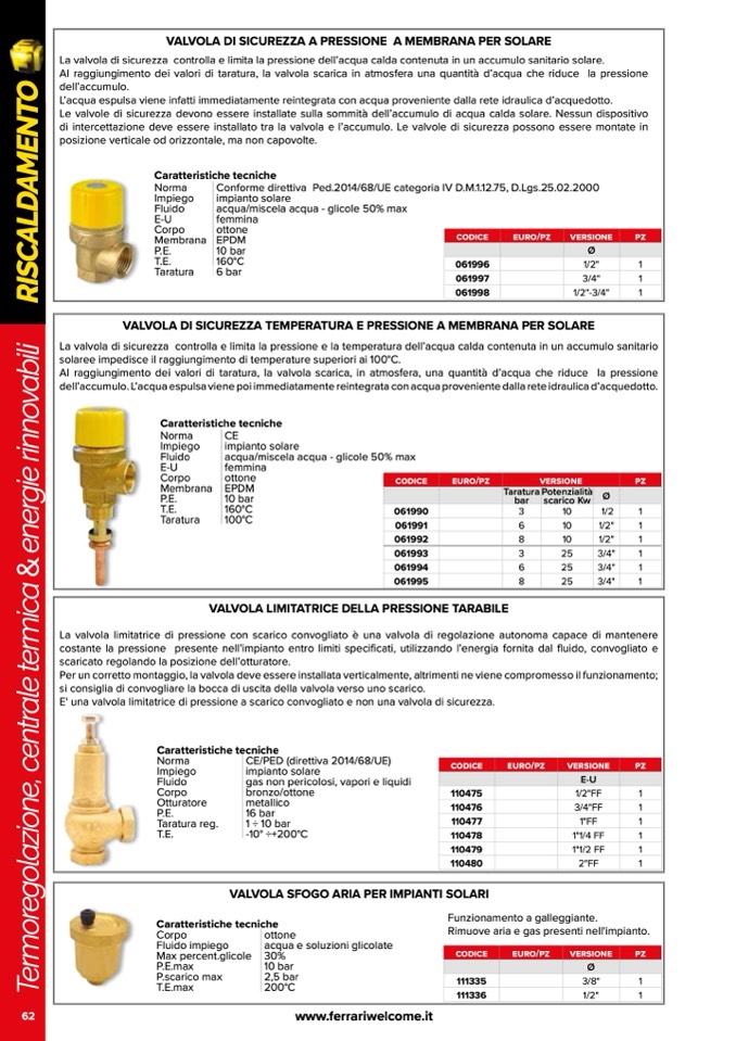 VALVOLA DI SICUREZZA A PRESSIONE A MEMBRANA PER SOLARE