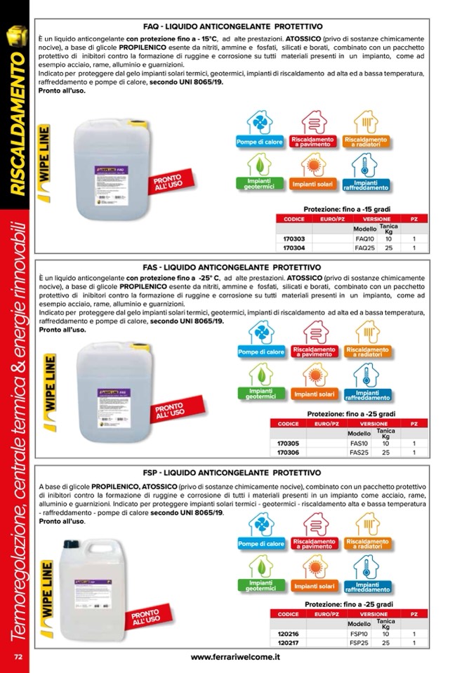 alluminio e guarnizioni. Indicato per proteggere impianti solari termici - geotermici - riscaldamento alta e bassa temperatura