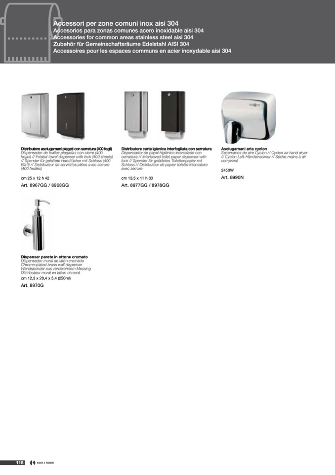 Accesorios para zonas comunes acero inoxidable aisi 304