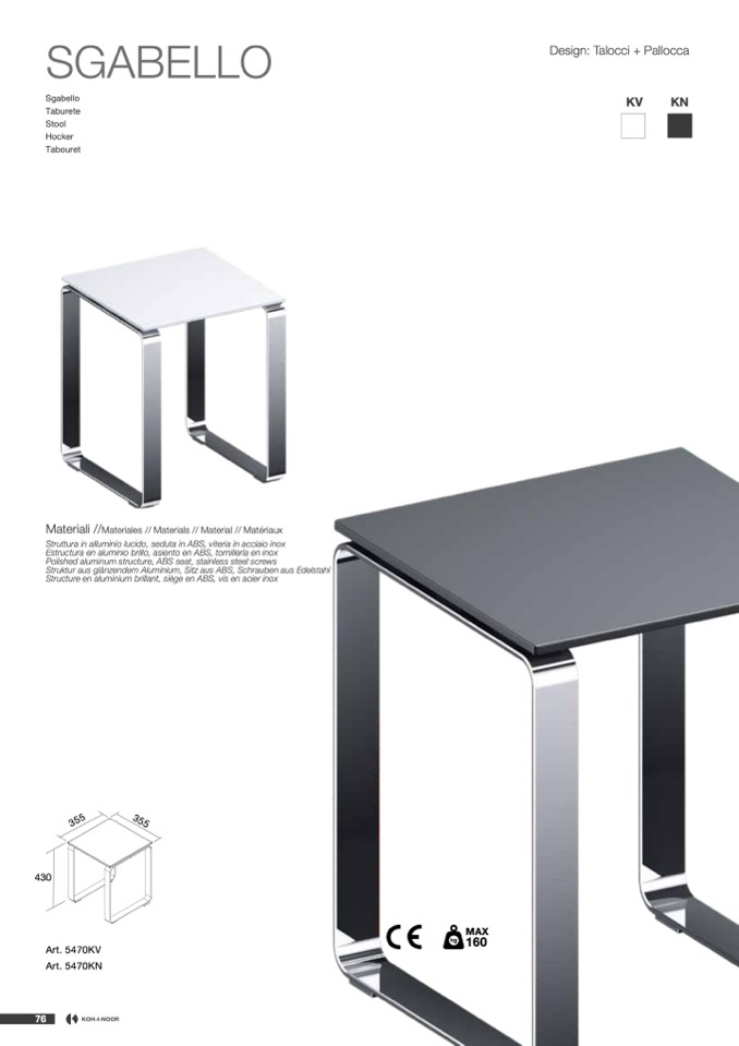 Struttura in alluminio lucido, seduta in ABS, viteria in acciaio inox