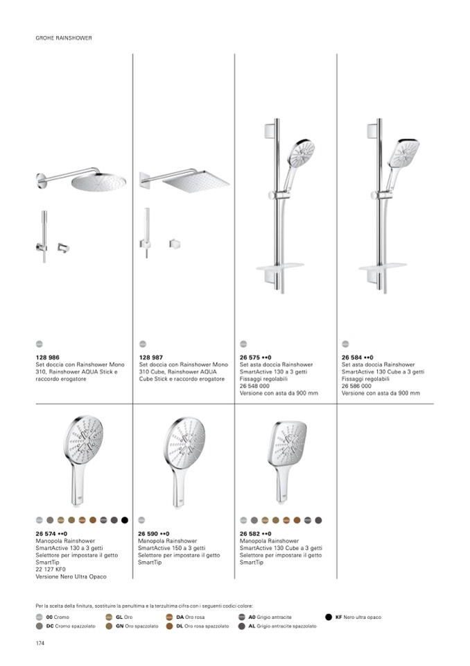 Per la scelta della finitura, sostituire la penultima e la terzultima cifra con i seguenti codici colore: