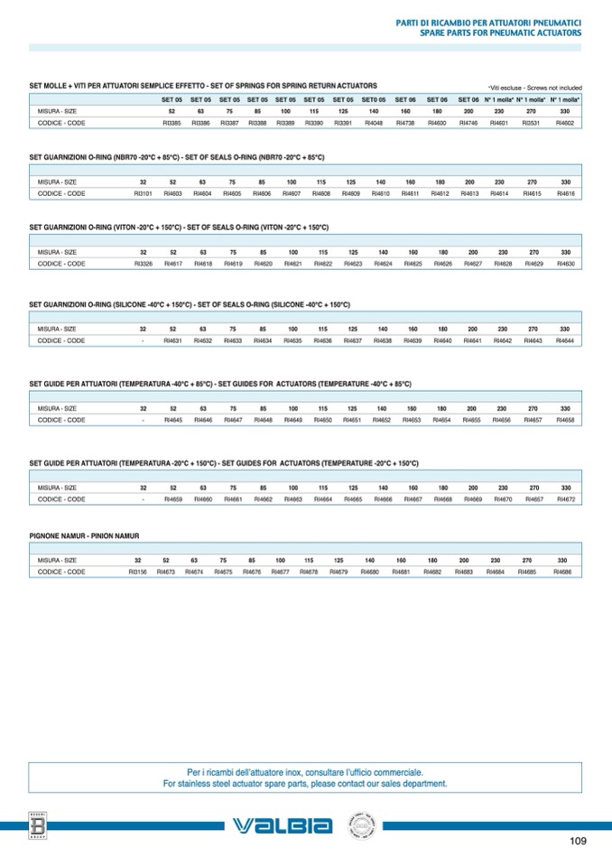 SPARE PARTS FOR PNEUMATIC ACTUATORS