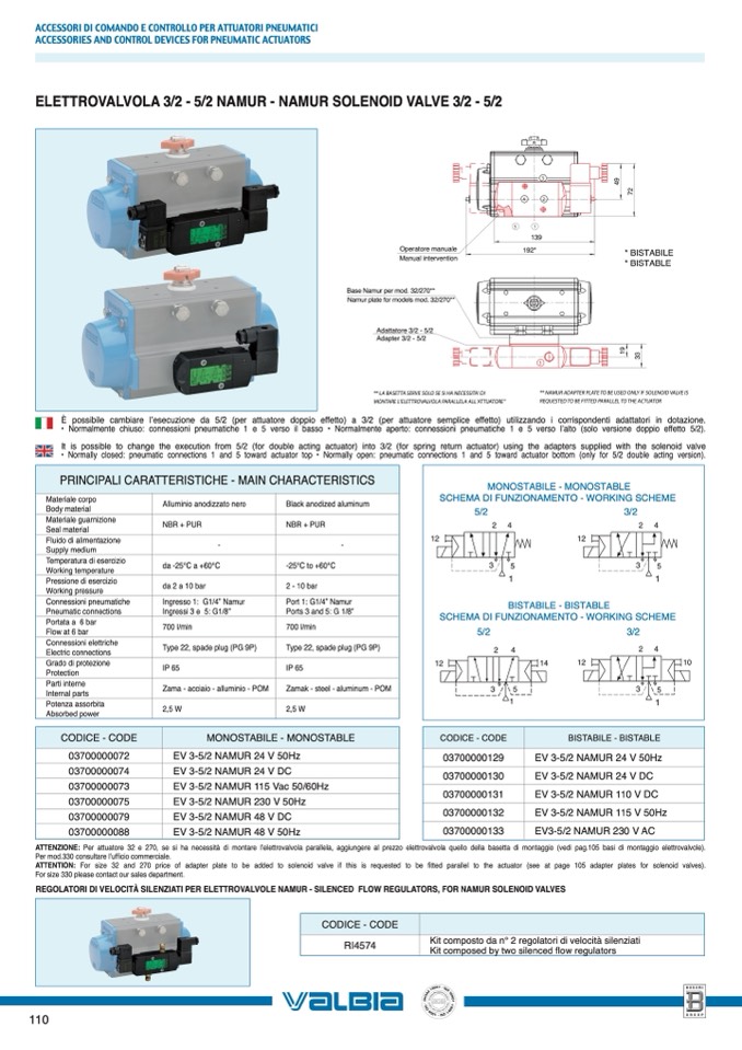 ATTENZIONE: Per attuatore 32 e 270, se si ha necessità di montare l’elettrovalvola parallela, aggiungere al prezzo elettrovalvola quello della basetta di montaggio (vedi pag.105 basi di montaggio elettrovalvole).