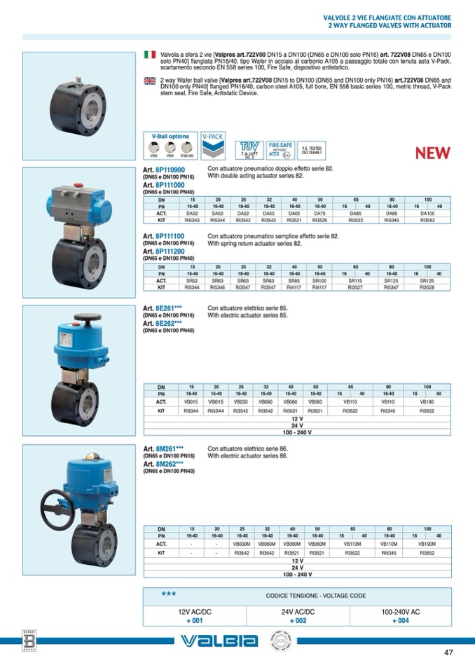 Valvola a sfera 2 vie [Valpres art.722V00 DN15 a DN100 (DN65 e DN100 solo PN16) art. 722V08 DN65 e DN100