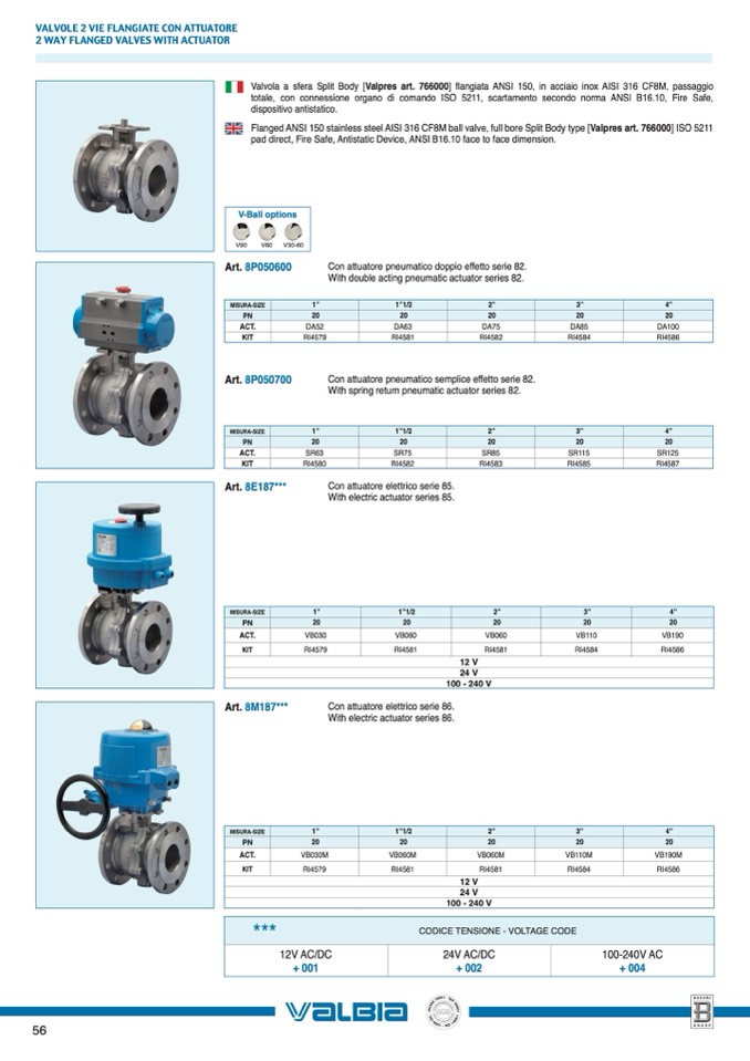 Valvola a sfera Split Body [Valpres art. 766000] flangiata ANSI 150, in acciaio inox AISI 316 CF8M, passaggio