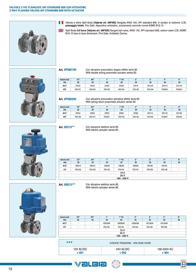 VALVOLE 2 VIE FLANGIATE API STANDARD 608 CON ATTUATORE