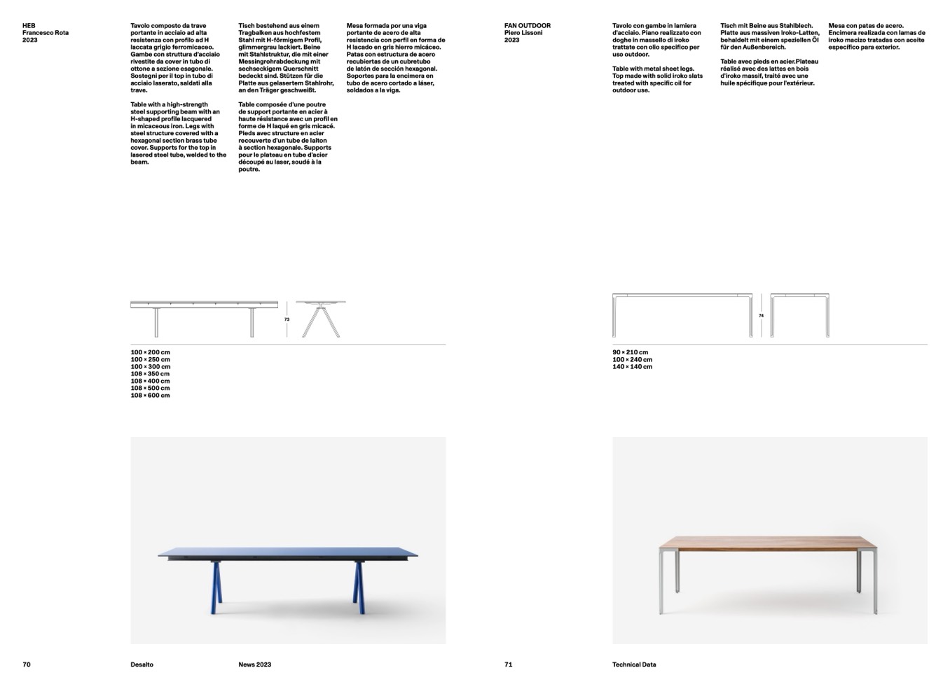 Tavolo con gambe in lamiera