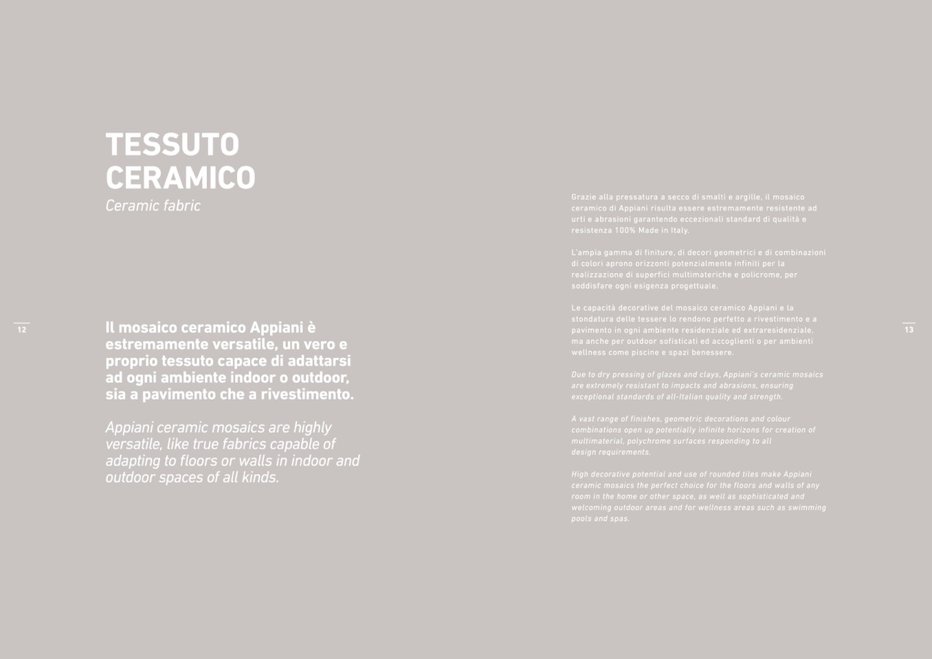 Due to dry pressing of glazes and clays, Appiani’s ceramic mosaics