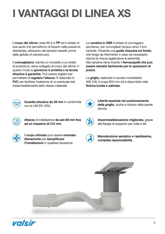 Il corpo del sifone Linea XS è in PP ed è dotato di